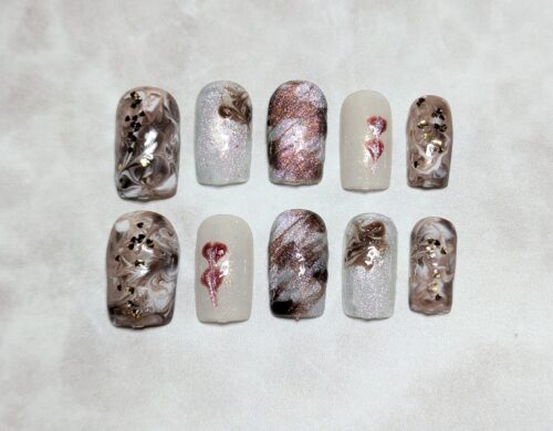 人差し指・薬指はチョコ感のあるマーブルと金箔、さらにホワイトラメに