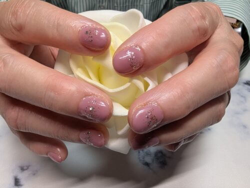 落ち着きのあるベーシックピンクに、シャンパンゴールドとシルバーラメを組み合わせ、