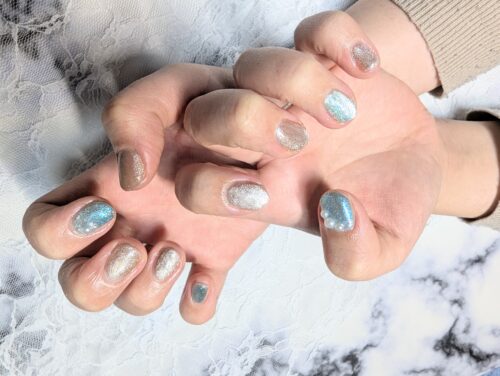 冬の指先に上品な輝きを。アイスジェル・ギャラクシーネイルで大人のエレガントデザイン(浜松市ネイルサロン Cu-too)**